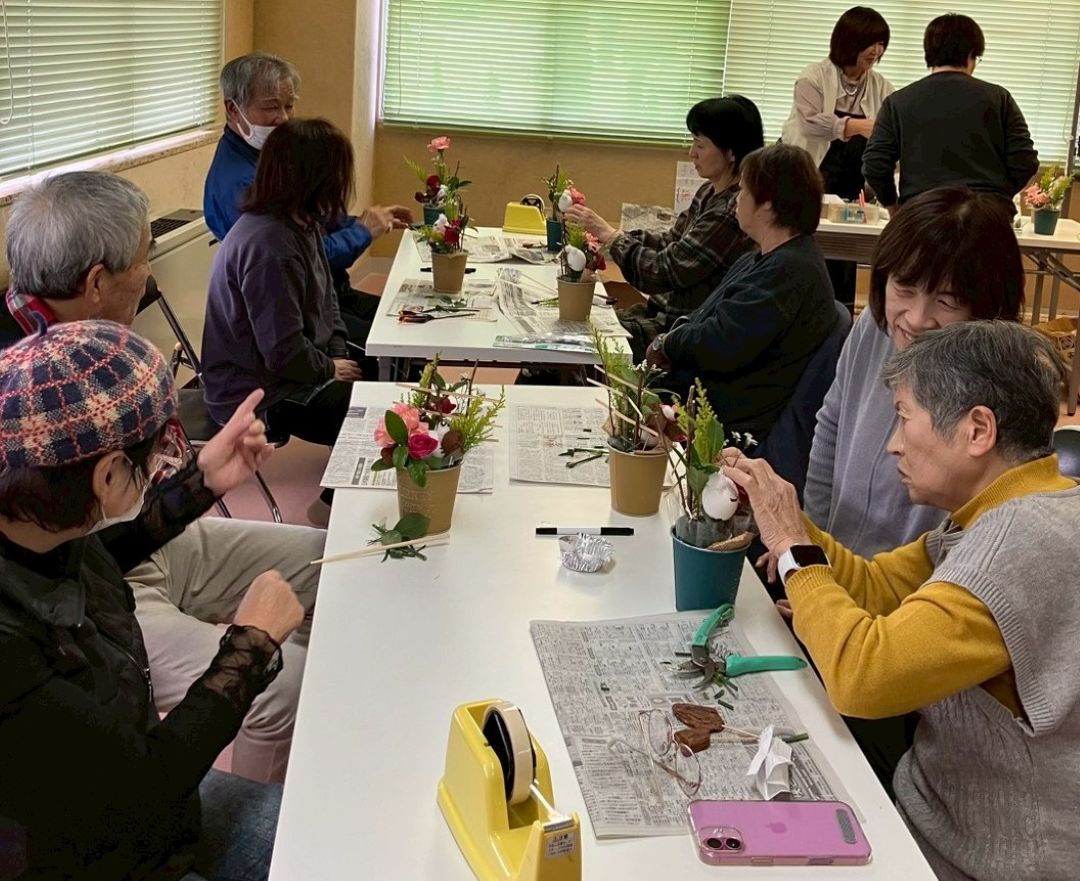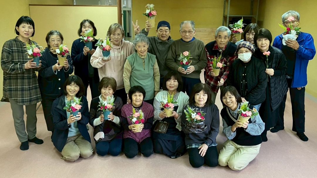 20名の皆さまにご参加いただき、フラワーアレンジメント講師の説明を手話通訳を交えて進めました。